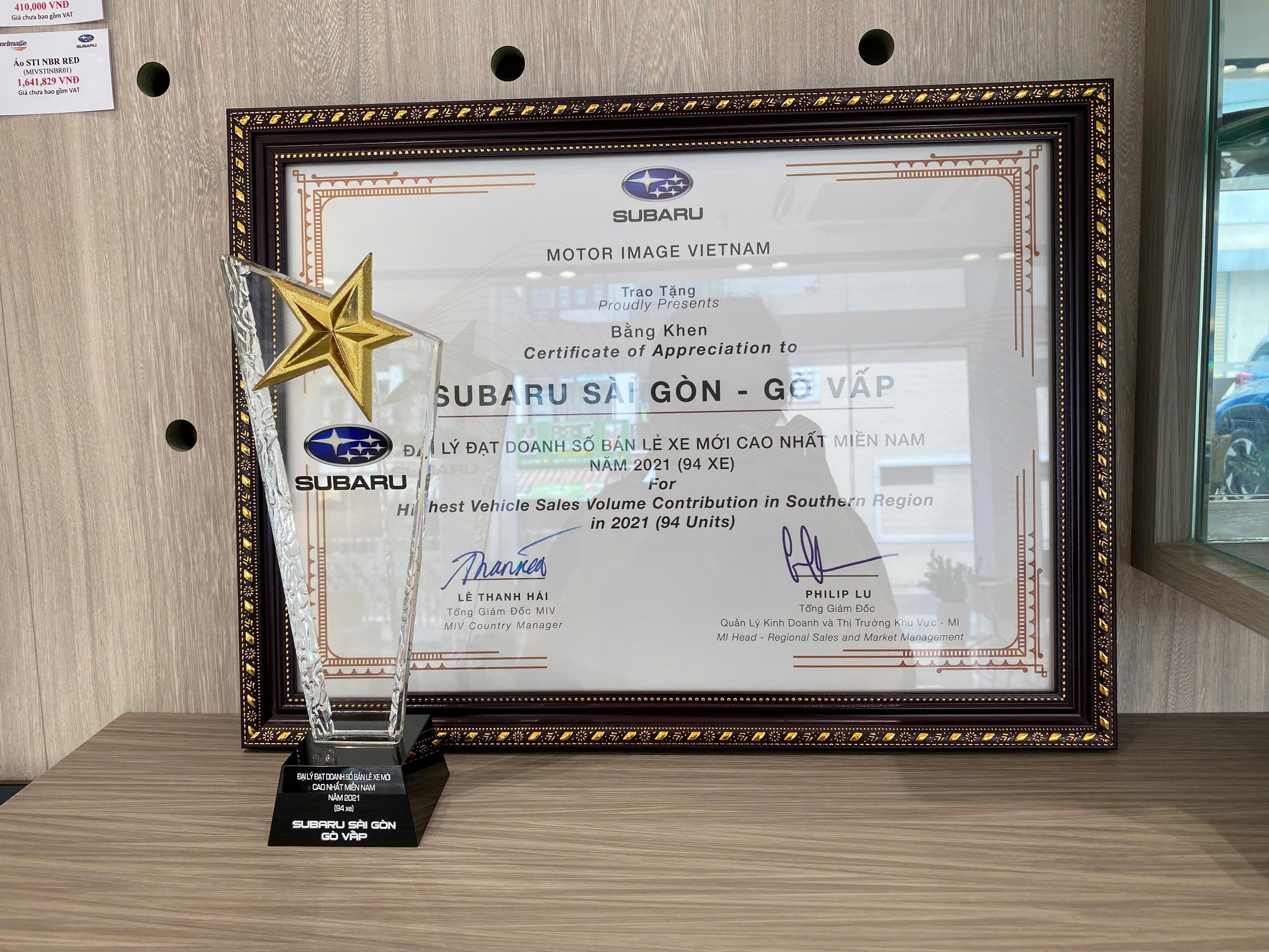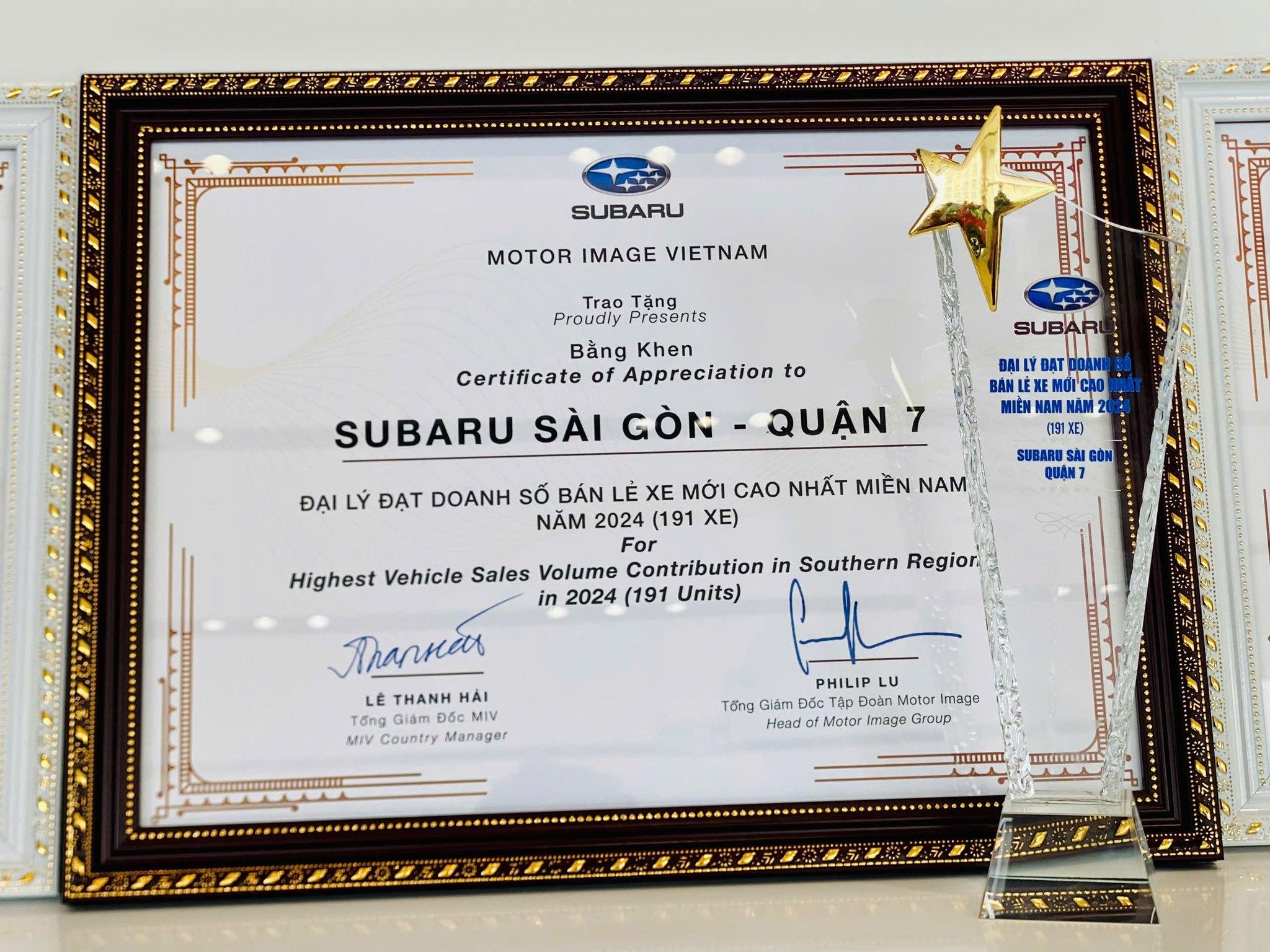 Là Đại lý 4S chính hãng uy tín nhất miền Nam, Subaru Sài Gòn nhiều năm liền vinh dự đạt danh hiệu Đại lý có doanh số bán lẻ cao nhất toàn quốc.
